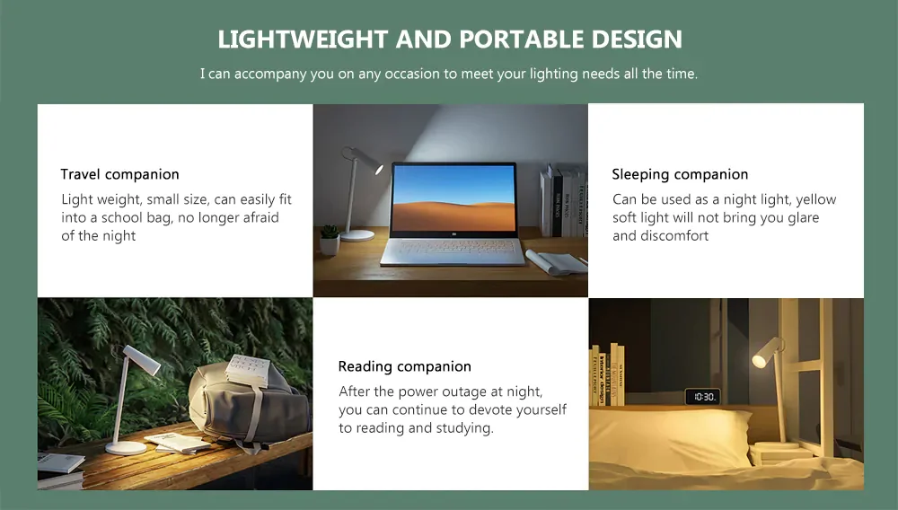 • USB-C Fast Charging: This modern Xiaomi Mijia Flexible Rechargeable Desk Lamp supports universal Type-C charging, allowing you to power up via a laptop, power bank, or wall adapter.